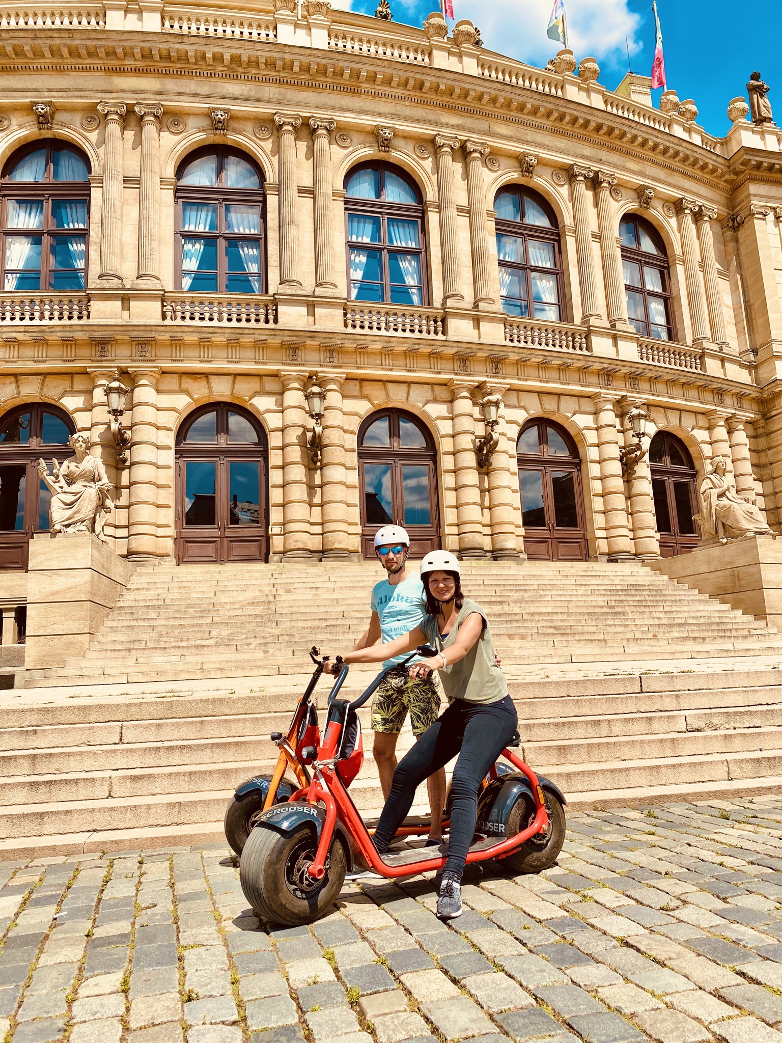 Doprovázet vás bude zkušený průvodce, který vás upozorní na všechny úžasné památky a zajímavosti, ale také vám bude schopen pomoci s čímkoli, co budete během své cesty Prahou potřebovat. Naši pracovníci vás poučí o bezpečnosti a umožní vám vyzkoušet si jízdu na SCROOSERU ještě předtím, než se vydáte na cestu. Poskytneme vám také helmu a další příslušenství (batoh, rukavice, pláštěnky, sluneční brýle) Nebojte se, není to tak dlouhé, jak to zní.